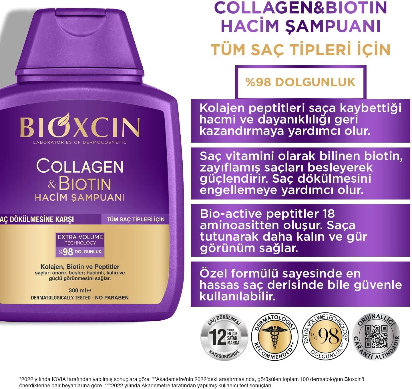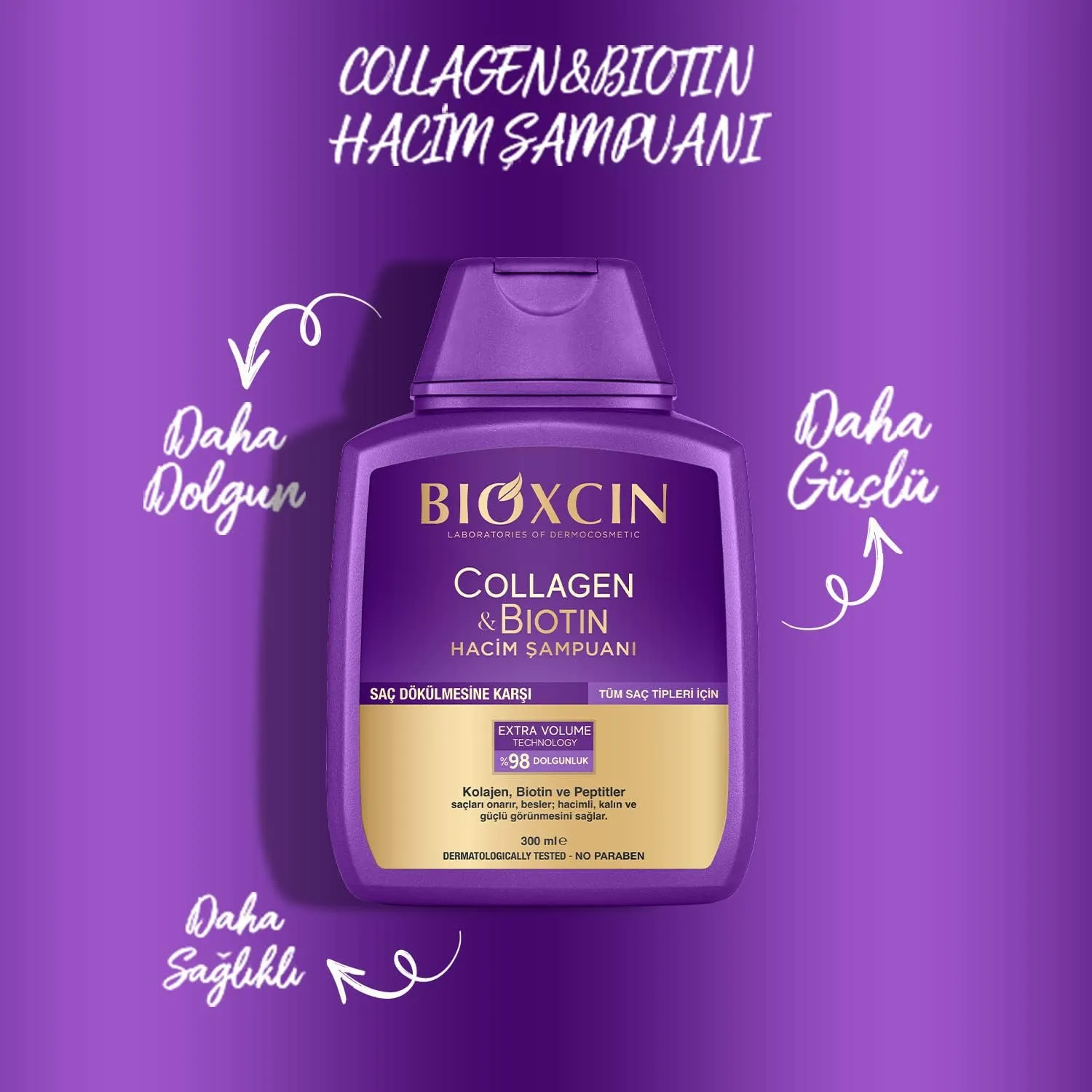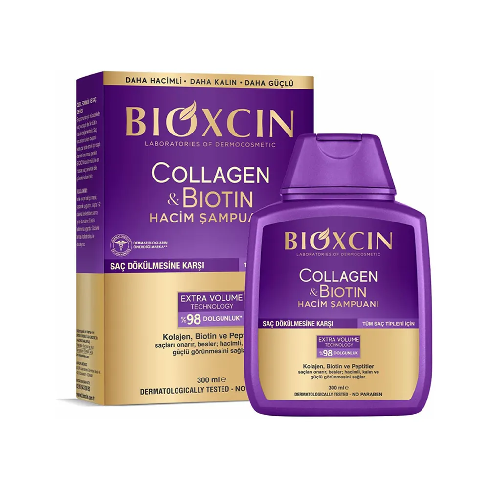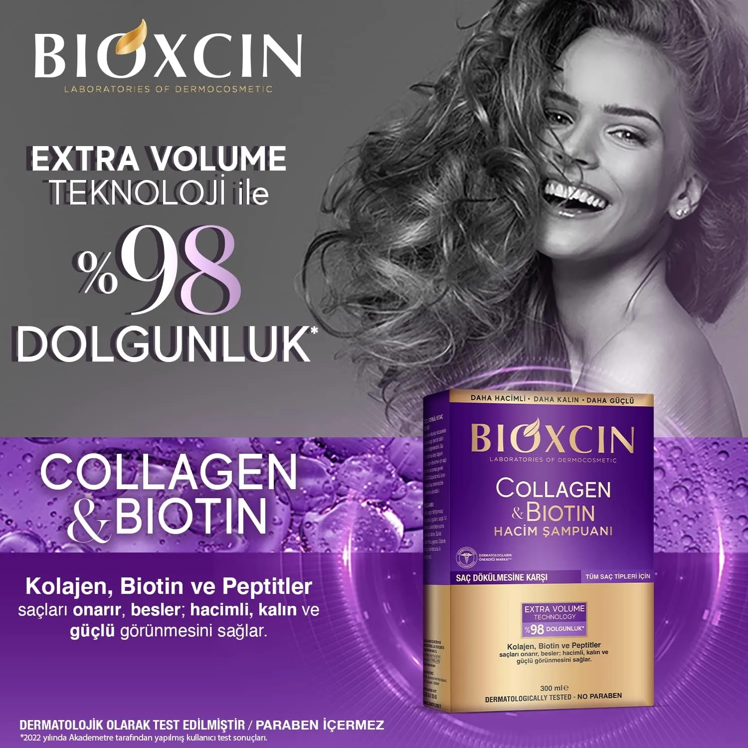 شامپو حجم دهنده و ضد ریزش مو بیوکسین حاوی کلاژن و بیوتین حجم 300 میلی‌لیتر
